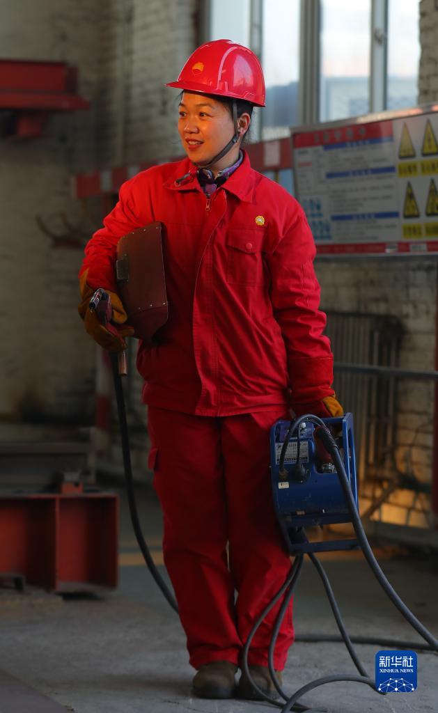 2月27日,李文靜在焊接車(chē)間拿起焊槍準備工作。