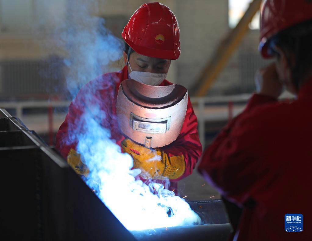 2月27日,李文靜在焊接車(chē)間作業(yè)。