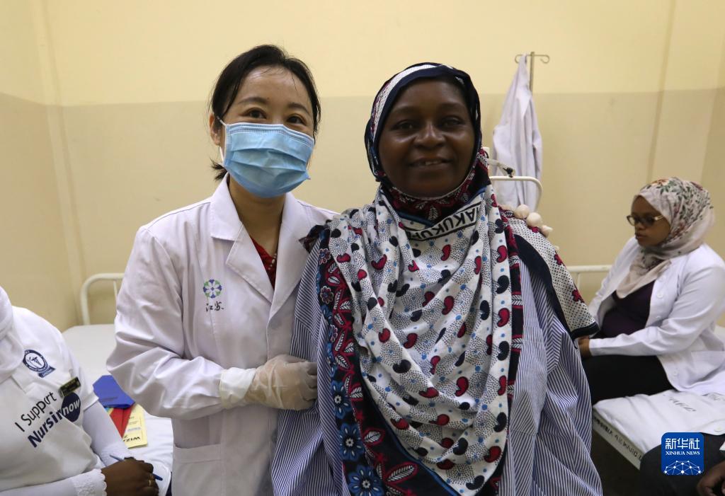 2月24日,在坦桑尼亞桑給巴爾島納茲莫加醫院,董莉莉(左)與術(shù)后視力恢復的穆欣合影。