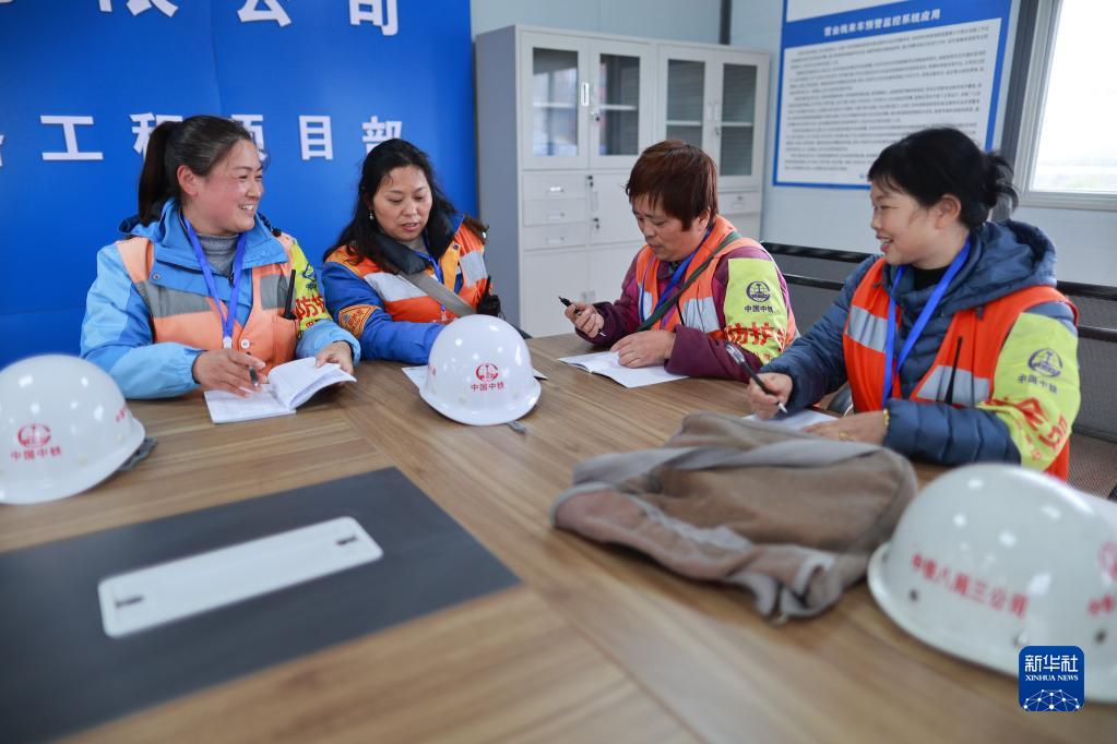 3月7日,中鐵八局女防護員在進(jìn)行工作交接。