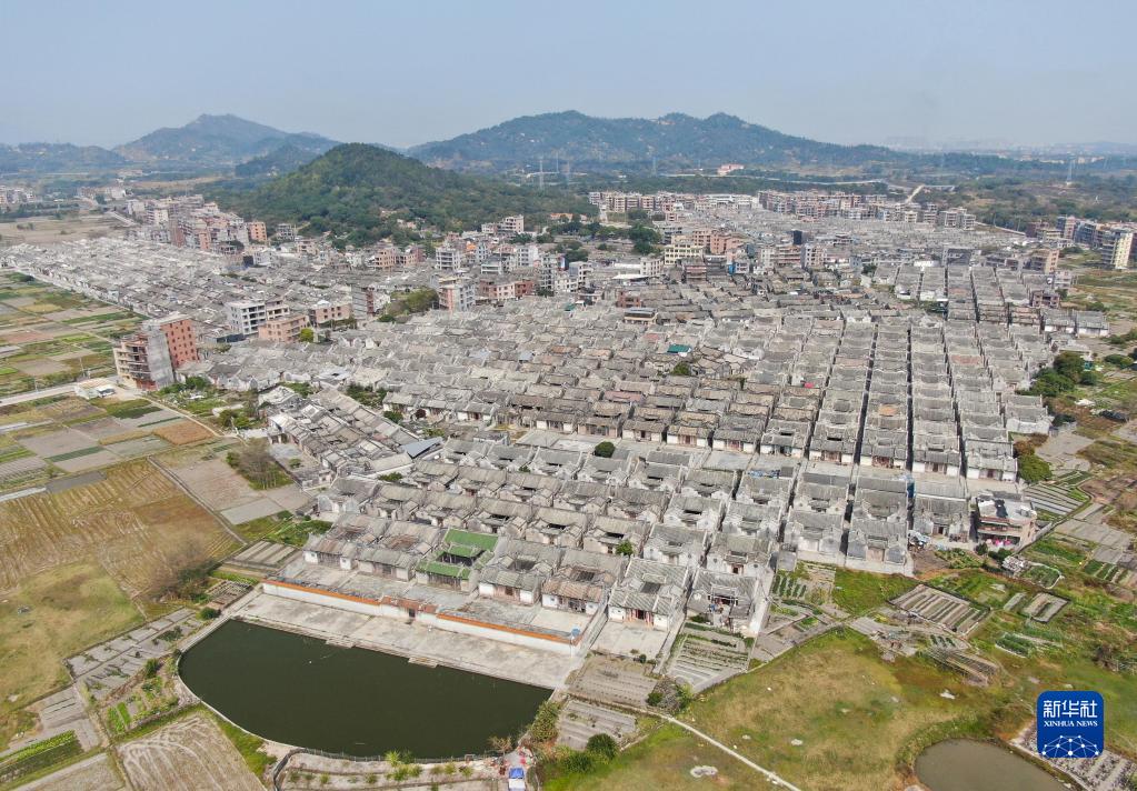 廣東省普寧市大壩鎮白坑村的傳統建筑具有鮮明的潮汕民居特色。民居的結構、高度,巷道寬度均統一。從空中俯瞰,橫平豎直、整齊劃一,村莊布局猶如大地上的棋盤(pán)。