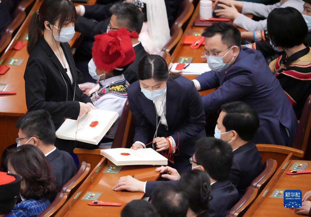 3月11日,十四屆全國人大一次會(huì )議在北京人民大會(huì )堂舉行第四次全體會(huì )議。這是工作人員發(fā)放選票。