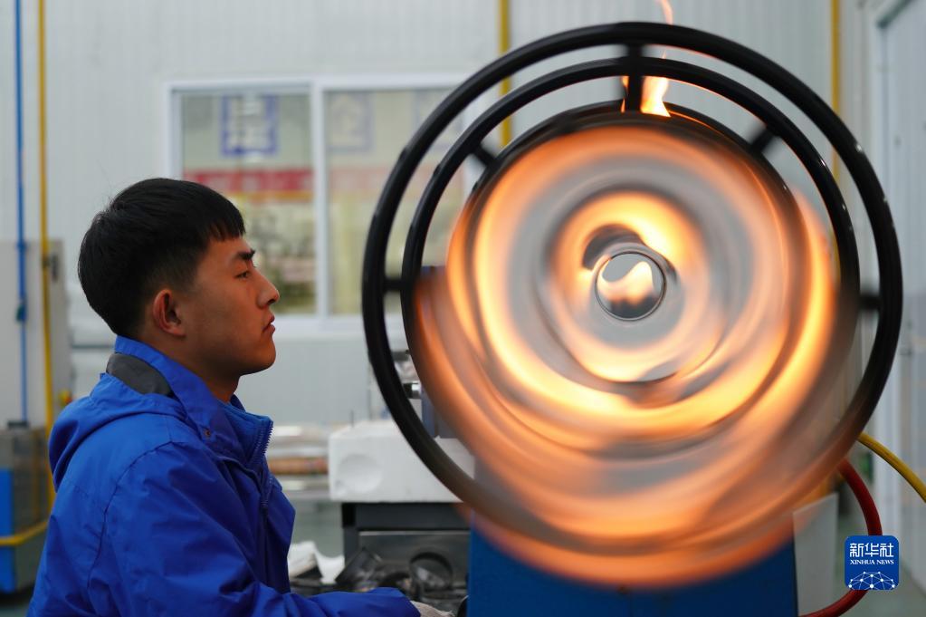 3月3日,河北省邢臺市威縣一家新能源科技企業(yè)的員工在中高溫集熱管生產(chǎn)線(xiàn)上作業(yè)。