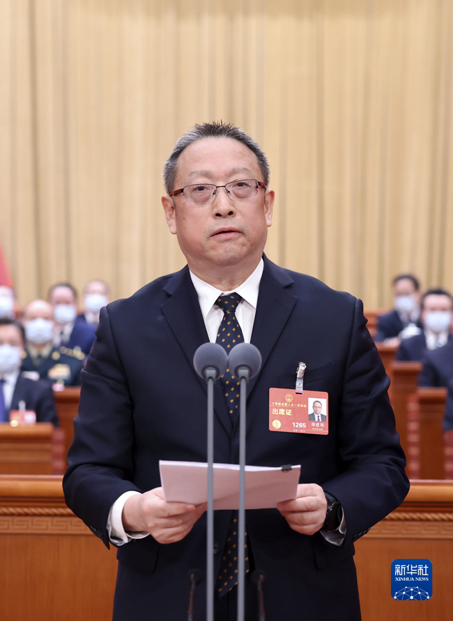 3月12日,十四屆全國人大一次會(huì )議在北京人民大會(huì )堂舉行第五次全體會(huì )議。鄭建邦主持會(huì )議。
