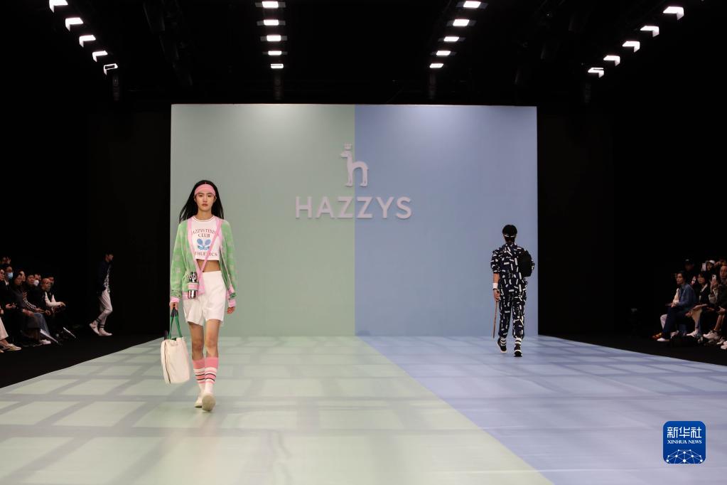 3月23日,模特在上海新天地秀場(chǎng)展示HAZZYS時(shí)裝。