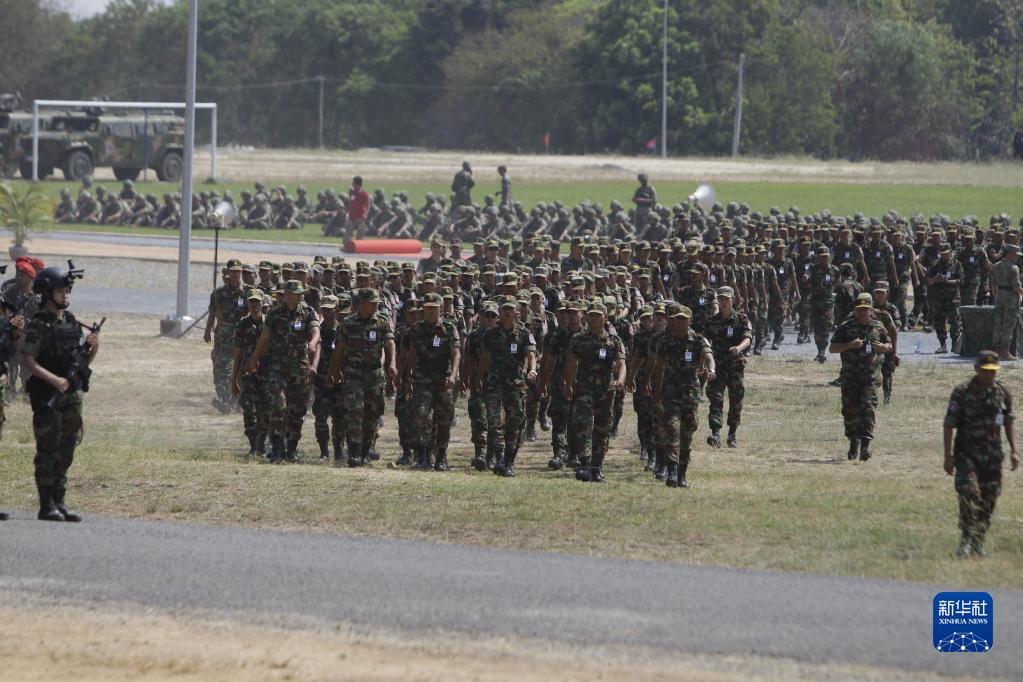 中柬“金龍-2023”聯(lián)演開(kāi)始儀式23日在柬埔寨王家軍某訓練基地舉行。中方帶隊領(lǐng)導、南部戰區陸軍副參謀長(cháng)陳敏田少將,柬埔寨王家軍副總司令兼陸軍司令洪瑪奈上將分別致辭。聯(lián)演雙方全體參演官兵、多國駐柬武官以及東南亞多國觀(guān)察員參加了儀式。新華社發(fā)(批隆攝)