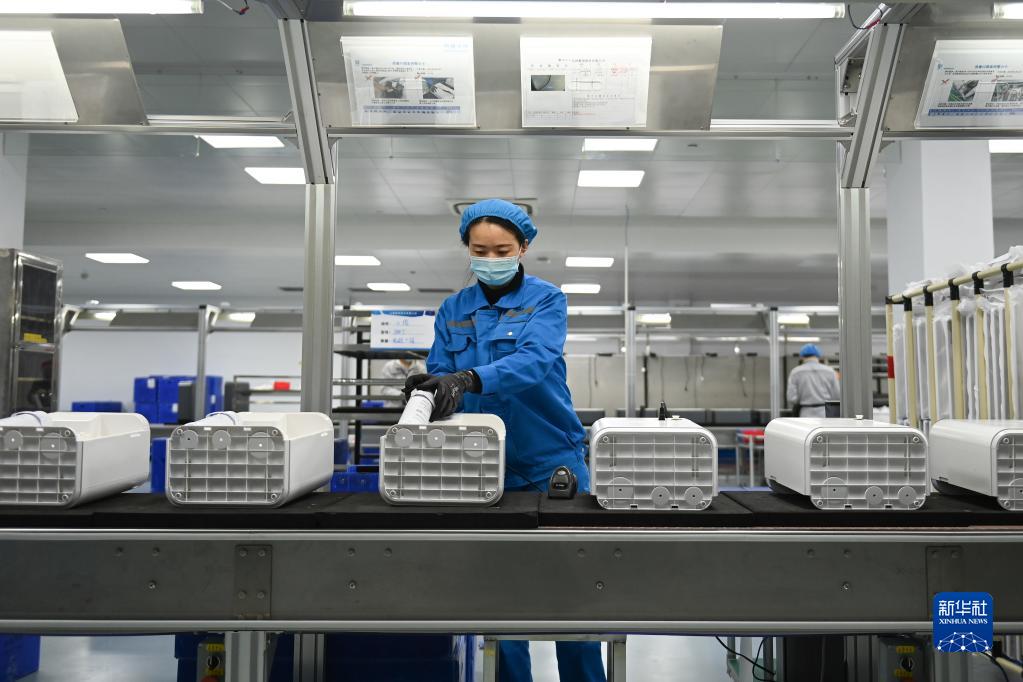 工人在浙江沁園水處理科技有限公司的生產(chǎn)車(chē)間檢測家用凈水產(chǎn)品(3月22日攝)。