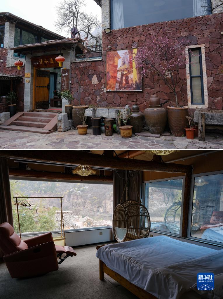這是3月23日在高家臺村拍攝的一家民宿的外景(上)和內景(下)(拼版照片)。