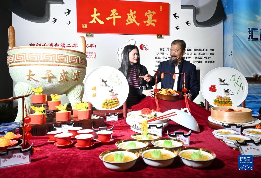 3月24日,從業(yè)者在2023中國國際餐飲產(chǎn)業(yè)博覽會(huì )現場(chǎng)介紹福州肉燕。