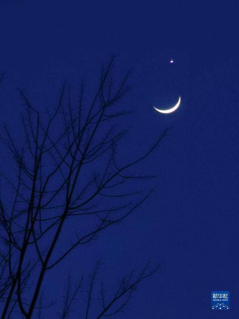 當晚,一輪彎彎的月牙與太陽(yáng)系最明亮的行星在天空上演一場(chǎng)奇妙的天象——月掩金星。