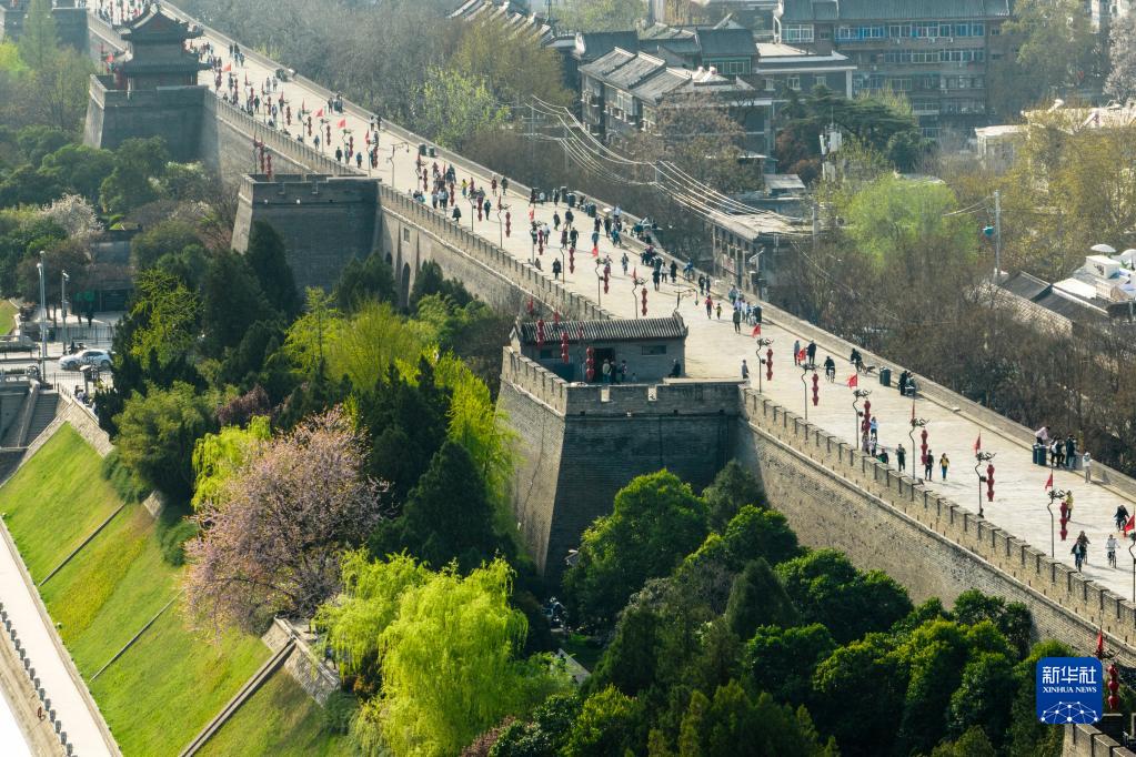 近日,陜西西安明城墻旁春意漸濃,吸引不少市民游客前來(lái)踏青。