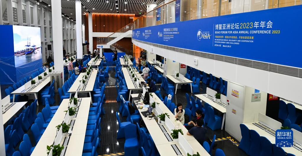 3月27日,一些媒體記者在博鰲亞洲論壇新聞中心工作。