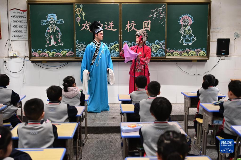 當日是世界戲劇日,江西省宜春市萬(wàn)載縣花燈戲劇團演員來(lái)到當地第二小學(xué),為學(xué)生們講解和表演花燈戲,讓孩子們近距離感受傳統戲劇文化的魅力。
