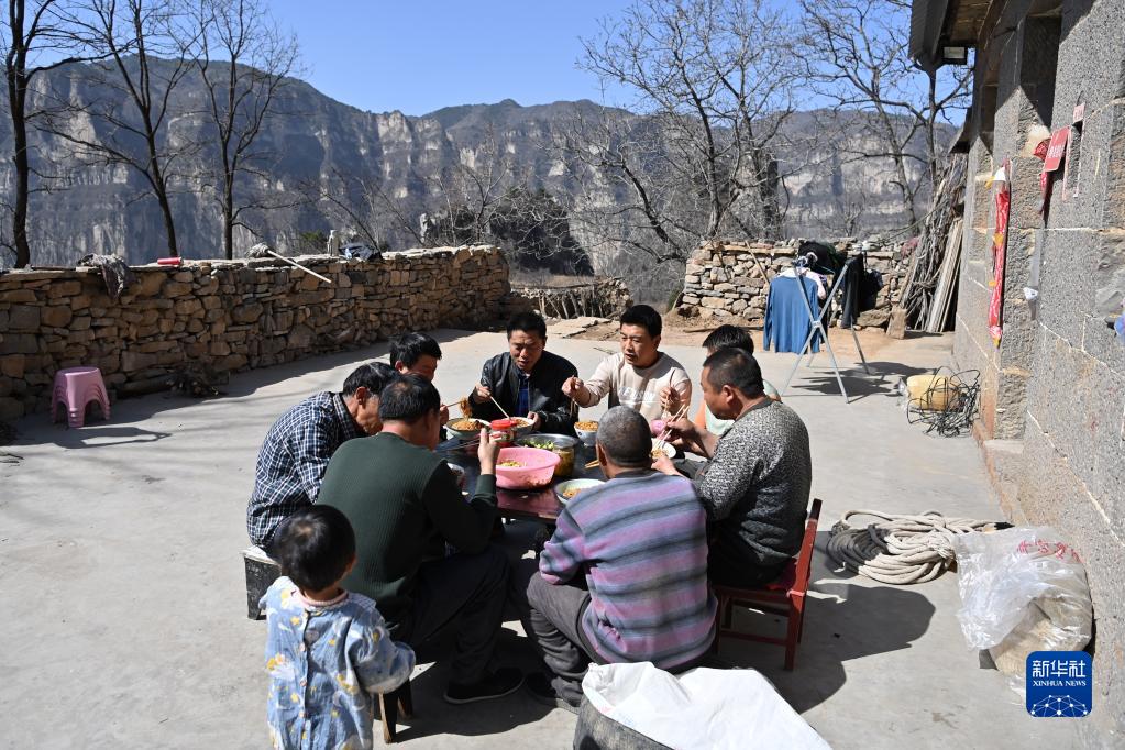 在山西省壺關(guān)縣大峽谷鎮青龍峽村,村民在吃午飯(3月8日攝)。新華社記者 楊晨光 攝