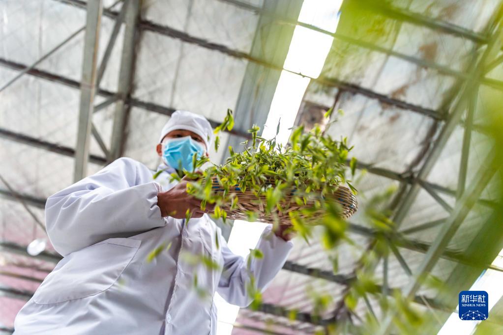 3月28日,工人在貴州省畢節市百里杜鵑管理區一茶葉加工廠(chǎng)制作明前茶。