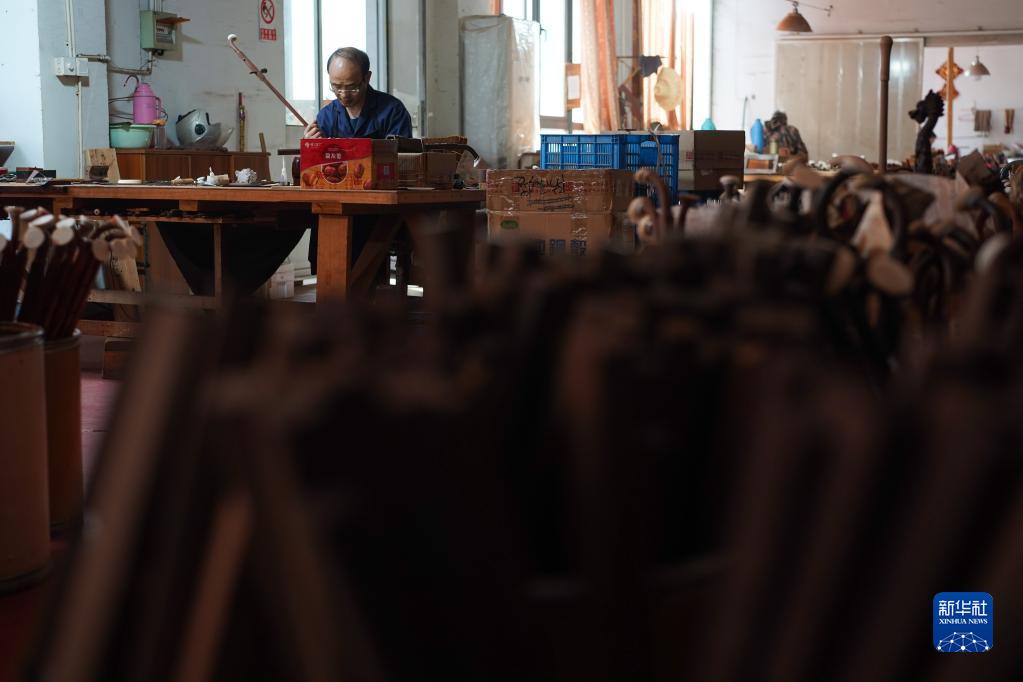 3月28日,在江蘇無(wú)錫梅村街道二胡產(chǎn)業(yè)園古月琴坊車(chē)間,工人在制作二胡。
