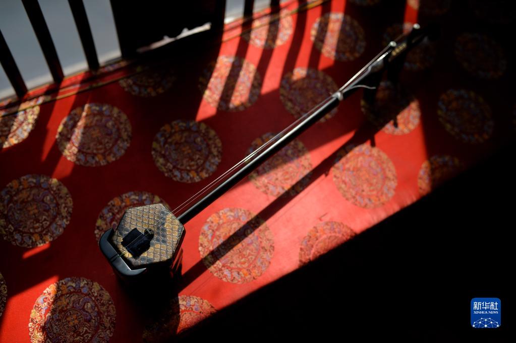 這是3月28日在江蘇無(wú)錫梅村二胡產(chǎn)業(yè)園拍攝的成品二胡。