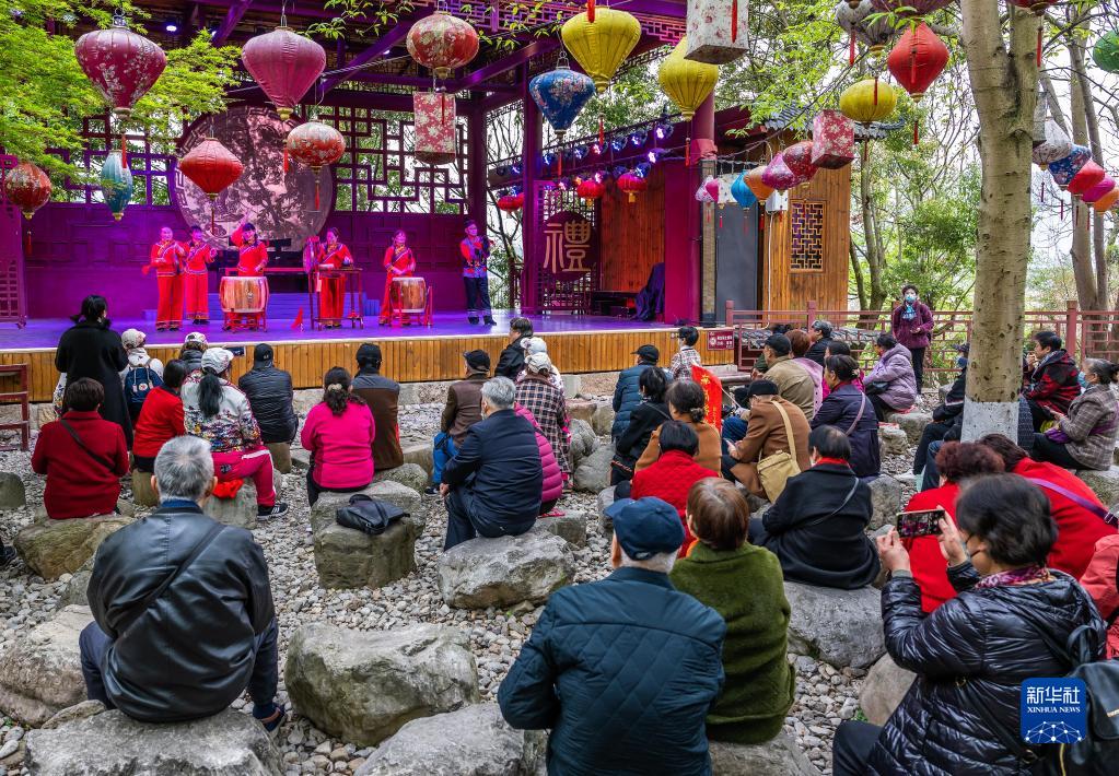 3月28日,游客在三峽大壩上游湖北省宜昌市秭歸縣屈原文化旅游區內觀(guān)看非遺表演。