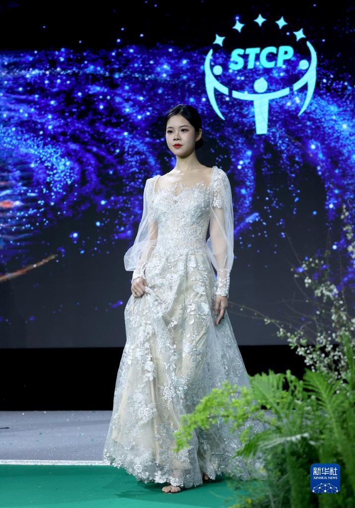 3月29日,模特在“綠色纖維制品可信平臺”發(fā)布會(huì )上展示可循環(huán)再利用的時(shí)裝。