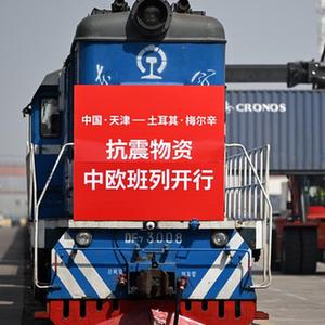 當日,中國鐵路北京局集團有限公司首趟天津至土耳其中歐班列從天津開(kāi)發(fā)區盛鐵物流有限公司專(zhuān)用線(xiàn)駛出。據了解,該班列裝載著(zhù)約1萬(wàn)頂抗震救援帳篷,將經(jīng)由阿拉山口鐵路口岸出境直達土耳其梅爾辛市。