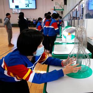 3月29日,中學(xué)生在校園流動(dòng)科普巡展中體驗趣味科學(xué)裝置。