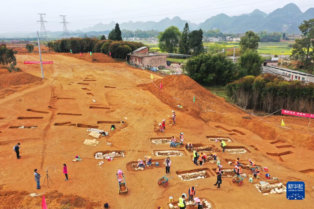 3月30日拍攝的貴州貴安新區大松山墓群挖掘現場(chǎng)(無(wú)人機照片)。