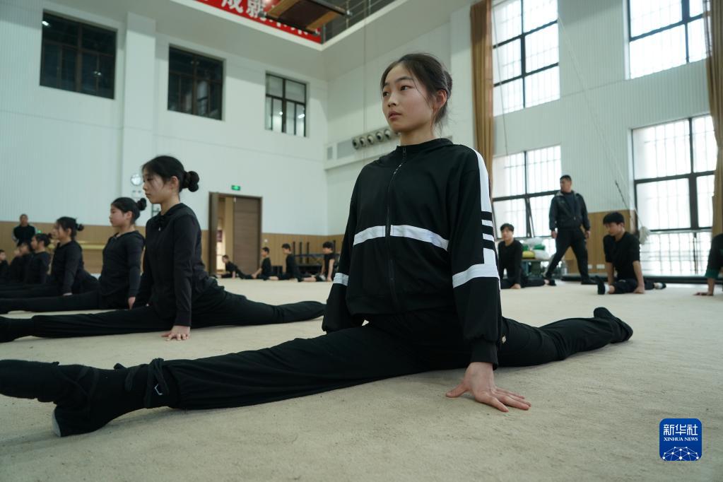 3月31日,演員在位于江蘇省鹽城市建湖縣的江蘇省雜技團訓練。