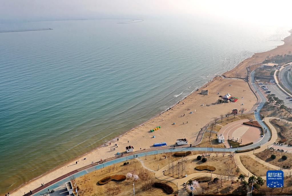 4月1日,游客在秦皇島市海港區金夢(mèng)海灣游覽。