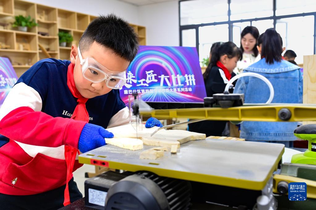 當日,內蒙古鄂爾多斯市康巴什區第四屆中小學(xué)生勞動(dòng)技能大賽“未來(lái)工匠大比拼”活動(dòng)在康巴什區青少年發(fā)展中心舉行,來(lái)自當地9所小學(xué)的100名“小工匠”在創(chuàng )意設計、木材加工等環(huán)節中感受勞動(dòng)之美,學(xué)習工匠精神。