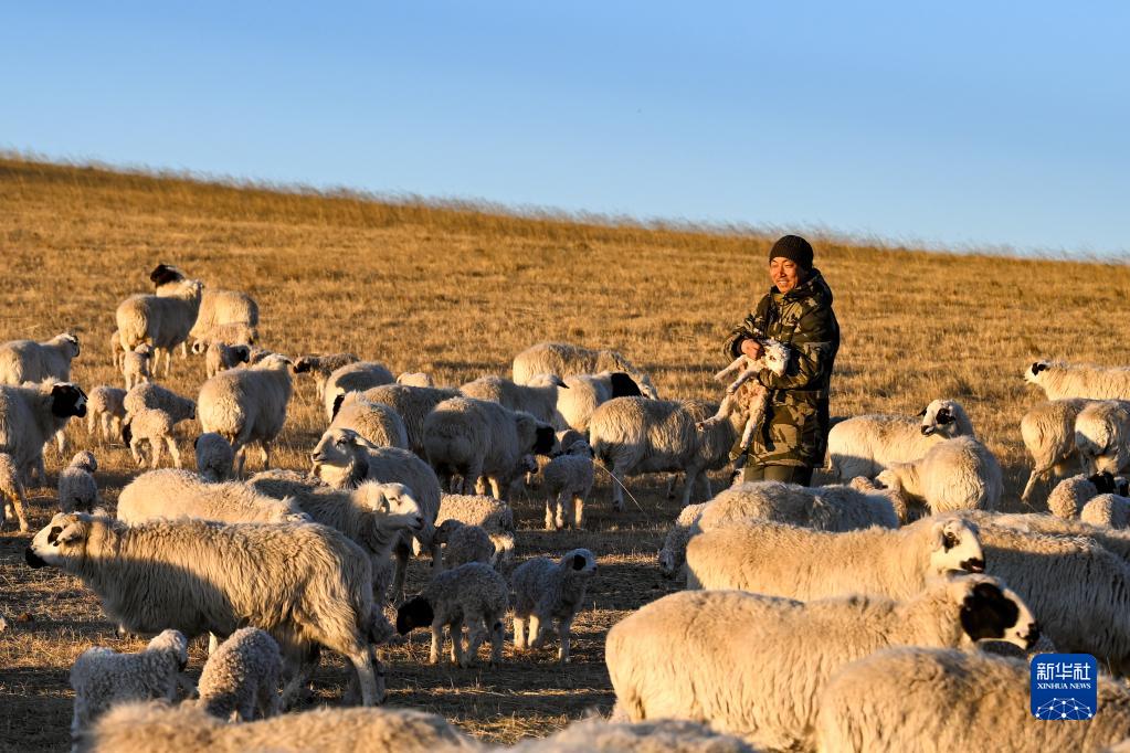 春日暖陽(yáng)下,朝克漫步在羊群中,看到新生的羊羔便彎腰查看。這里是錫林郭勒,這里是春天的草原,人與自然和諧共生的“春日牧歌”在此奏響。