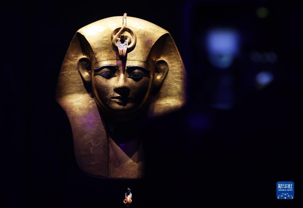 這是4月6日在法國巴黎拍攝的法老木質(zhì)鍍金面罩。