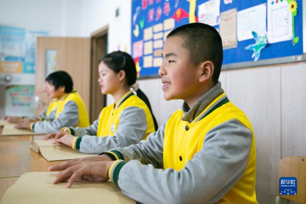 3月31日,重慶市特殊教育中心的視力障礙學(xué)生在教室內朗讀古詩(shī)。