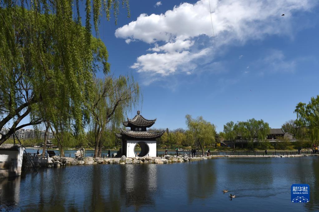 4月7日,游客在北京陶然亭公園游玩。