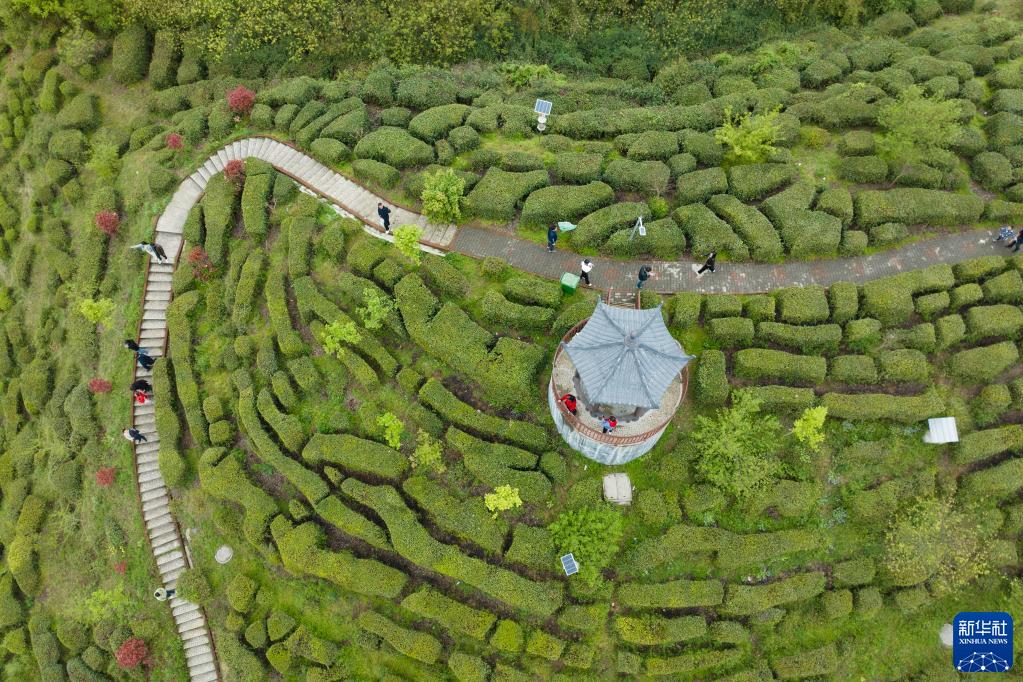 漢中市南鄭區牟家壩鎮一處茶園景色(4月5日攝,無(wú)人機照片)。