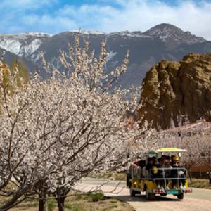 春暖花開(kāi)的季節,位于青海省海南藏族自治州貴德縣的貴德國家地質(zhì)公園迎來(lái)春游的游客,盛開(kāi)的春花與丹霞地貌、雪山構成一幅美麗的高原春色圖。