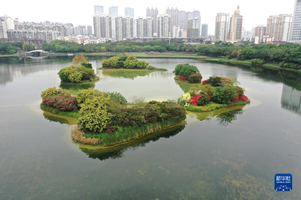 近日,廣西南寧市南湖湖心生態(tài)島上木棉、三角梅等鮮花盛開(kāi),構成一幅春意盎然的美麗畫(huà)卷。