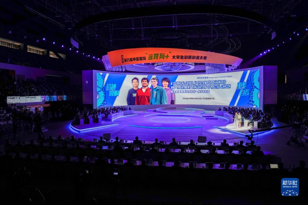 這是4月9日拍攝的第八屆中國國際“互聯(lián)網(wǎng)+”大學(xué)生創(chuàng )新創(chuàng )業(yè)大賽冠軍爭奪賽活動(dòng)現場(chǎng)。