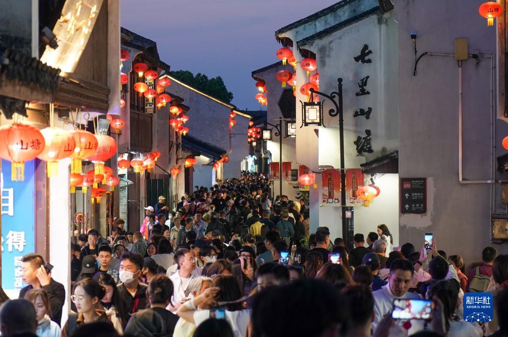 江蘇蘇州:山塘街里游人如織