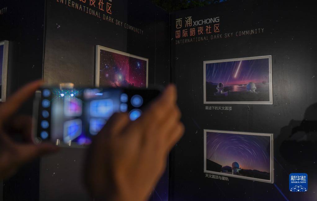 4月10日,參觀(guān)者在“西涌國際暗夜社區”授牌儀式上拍攝展出的西涌星空圖。