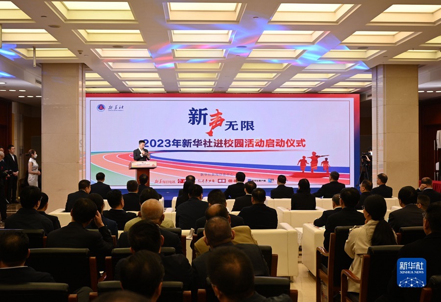 4月11日拍攝的“新聲無(wú)限——2023年新華社進(jìn)校園活動(dòng)”啟動(dòng)儀式現場(chǎng)。當日,“新聲無(wú)限——2023年新華社進(jìn)校園活動(dòng)”啟動(dòng)儀式在北京舉行。新華社記者 金良快 攝