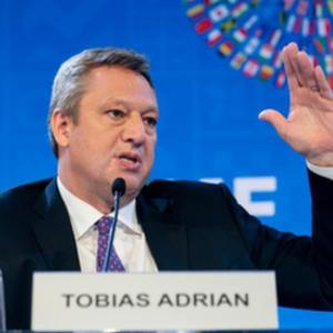 4月11日,在美國華盛頓,IMF貨幣與資本市場(chǎng)部主任托比亞斯·阿德里安出席記者會(huì )。