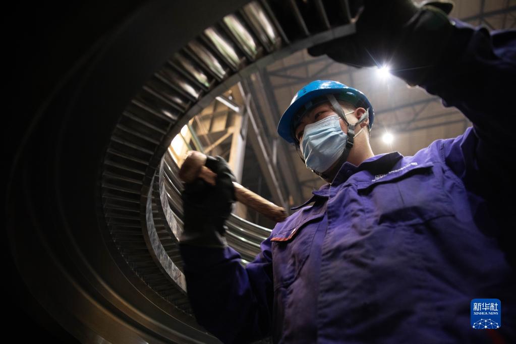 4月10日,工人在哈電集團哈爾濱汽輪機廠(chǎng)有限責任公司生產(chǎn)車(chē)間內進(jìn)行作業(yè)。