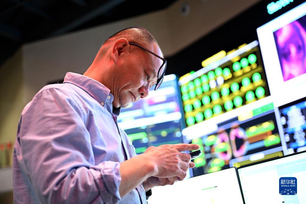 4月12日,在全超導托卡馬克核聚變實(shí)驗裝置(EAST)控制大廳,EAST物理實(shí)驗總負責人龔先祖在實(shí)驗成功后向好友發(fā)消息慶祝。