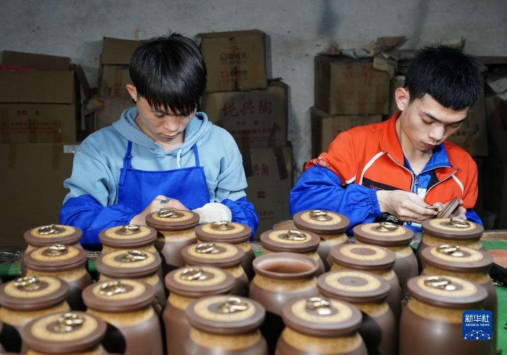 4月11日,在廣西欽州市,員工在坭興陶生產(chǎn)車(chē)間工作。