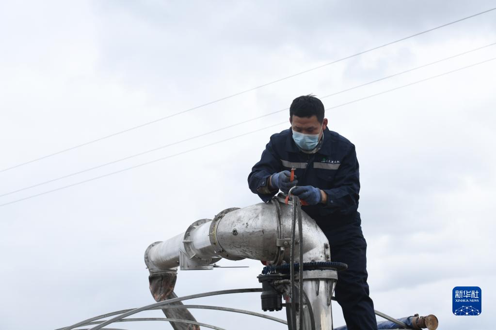 4月12日,在建設農場(chǎng)有限公司一處農田旁,許志國的兒子許呈浩在查看加肥設備的運行情況。2019年,在外地工作的許呈浩回到建設農場(chǎng)有限公司第四管理區,協(xié)助父親許志國進(jìn)行春耕與秋收等農業(yè)生產(chǎn)作業(yè)。