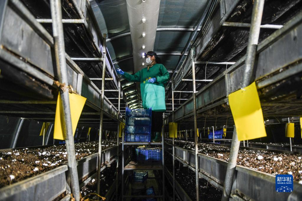近日,在山東省泰安市岱岳區祝陽(yáng)鎮徐家汶村永樂(lè )食用菌科技產(chǎn)業(yè)園內,雙孢菇進(jìn)入采摘期,員工們在出菇房里采摘、分揀、裝籃。目前,園區食用菌種植面積已達300余畝,年產(chǎn)食用菌4000多噸,為100多名村民提供務(wù)工增收的渠道。