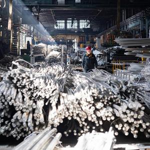 4月13日,在中鋁集團東北輕合金有限責任公司,工人在生產(chǎn)廠(chǎng)區作業(yè)。
