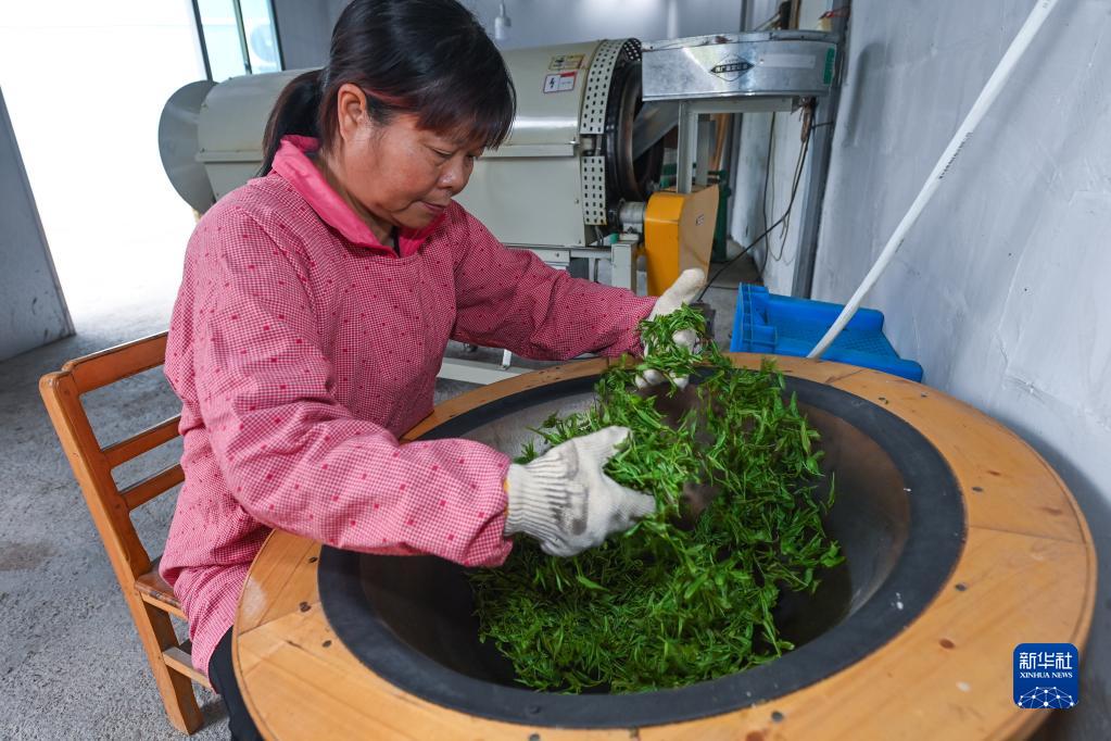 4月13日,在諸暨市東白湖鎮上家湖村,茶農張秀麗在炒制石筧茶。該茶葉經(jīng)過(guò)炒制后統一由當地的共富工坊進(jìn)行包裝和銷(xiāo)售。