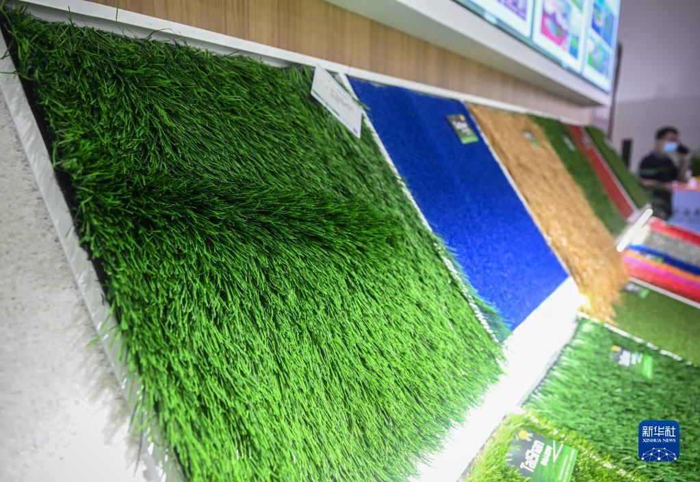 這是4月13日在泰山體育展臺拍攝的整體可回收草。