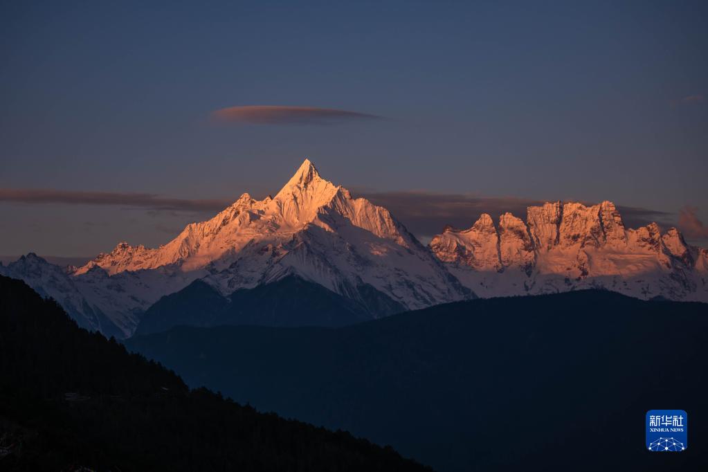 這是日出時(shí)分拍攝的云南省迪慶州梅里雪山一景(2023年3月10日攝)。